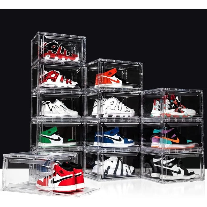 Cajas transparentes abatibles para guardar zapatillas (paquete de 12) - Vitrinas apilables de acrílico para exhibir zapatos
