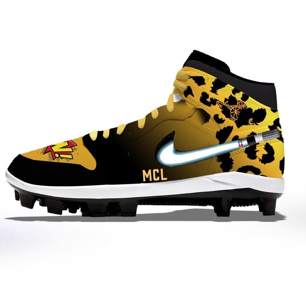 A detailed side-view digital design of your custom cleats created by our concept team.