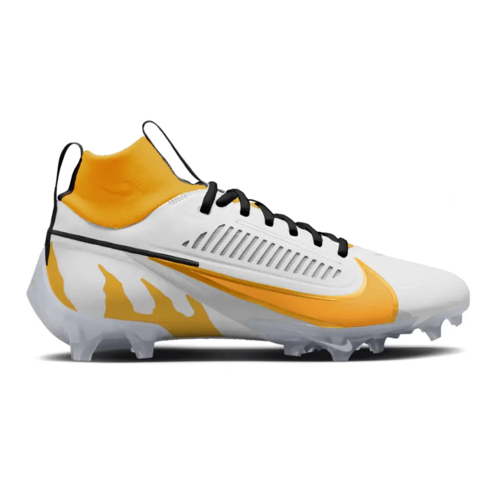 White and yellow Nike football cleat from the DT Alternate Nike Vapor Edge Pro 360 2 series