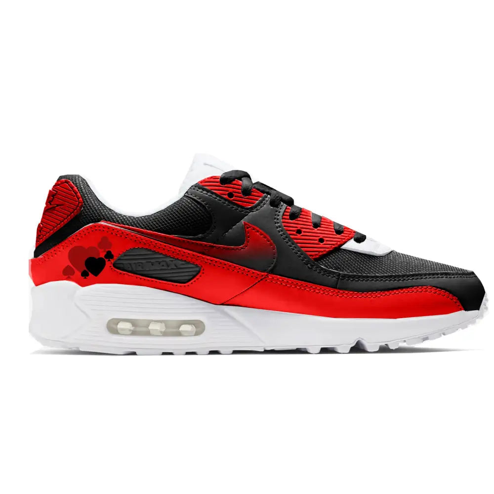 Red and black Nike Air Max 90 sneaker from Harley collection, stylish athletic shoe