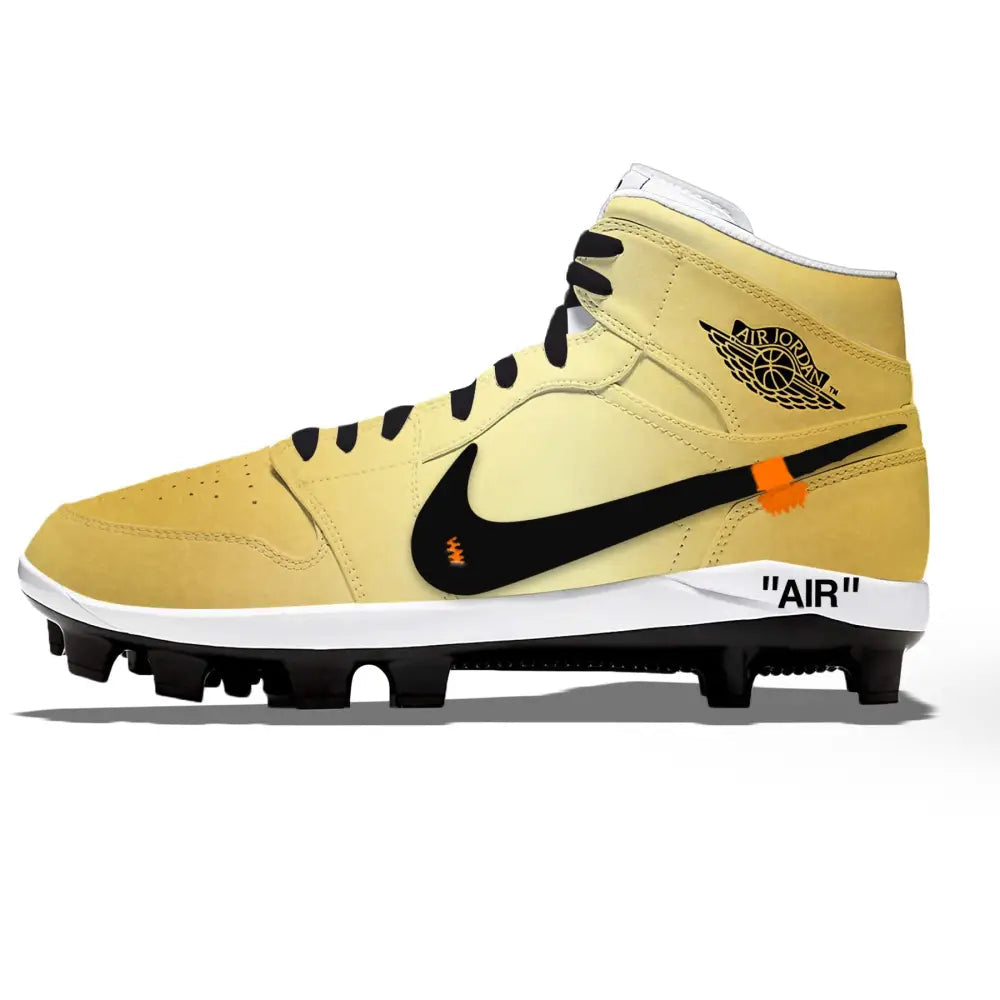 ’OW Gold’ Jordan 1 Retro Cleats - Cleats