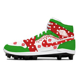 Christmas-themed athletic cleat from the Christmas Sweater Jordan 1 Retro Cleats collection