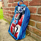 Travel-ready shoe carry bag with a clear front panel to protect your kicks and show them off.