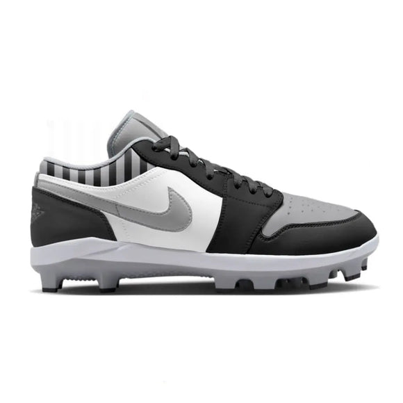 Gray black and white Sox Jordan 1 Retro Cleats for baseball with durable design