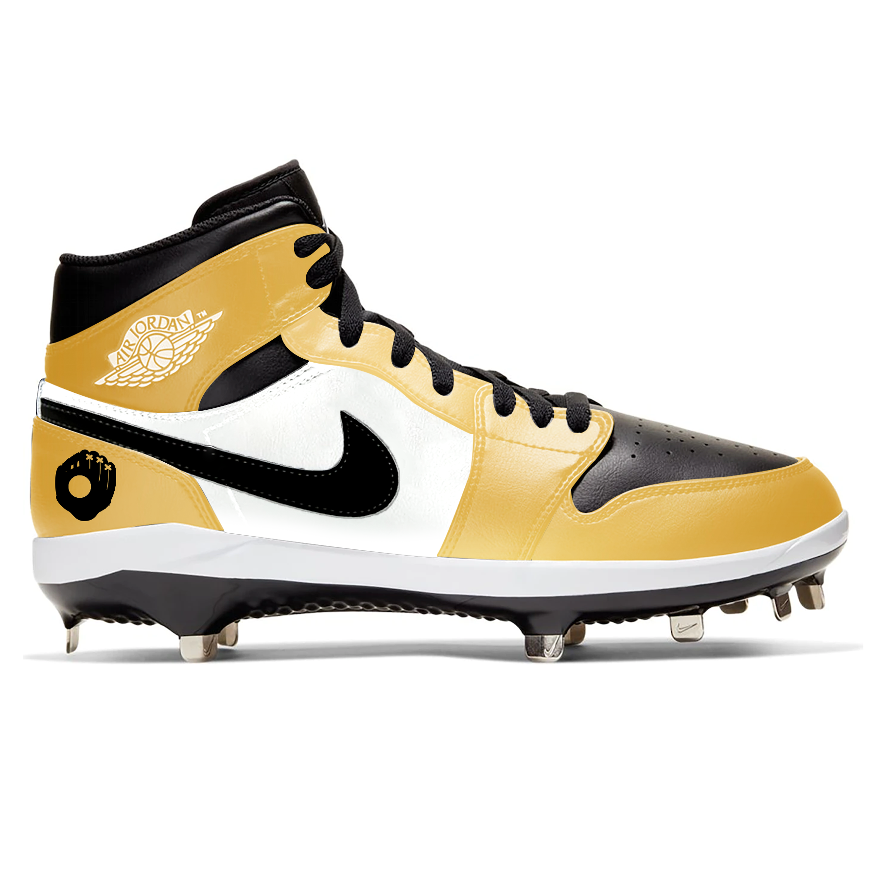 Gold and black Jordan 1 Retro Cleats for baseball with stylish design and comfort