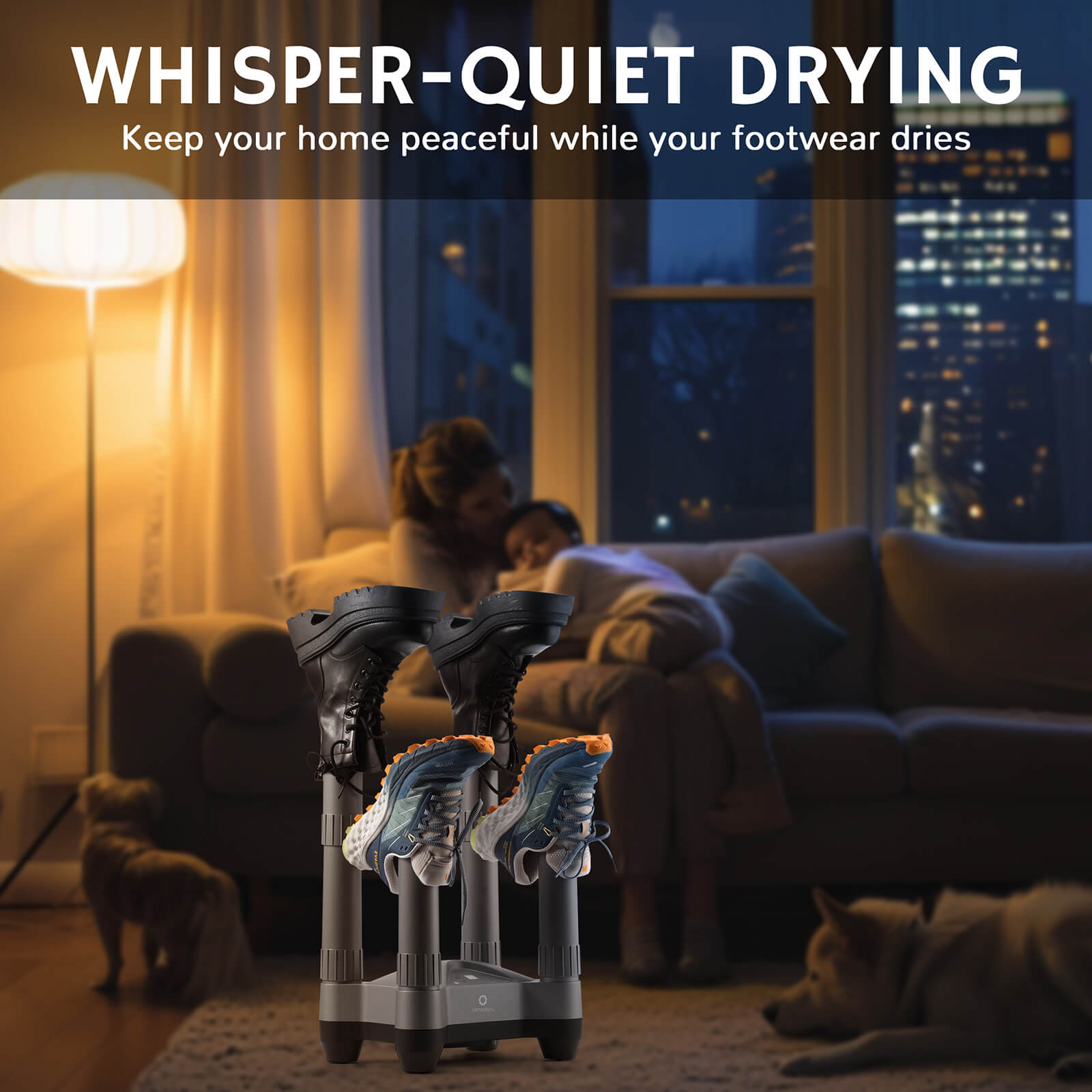 Dry faster, smell fresher, play harder. The Airthereal SD20 handles two pairs of sneakers, cleats, boots, or shoes simultaneously with ozone deodorization that eliminates odors at 20 mg/h. Customize your dry time from 30 minutes to 9 hours, enjoy silent operation at just 50 dB, and trust built-in overheat protection to keep your gear safe. Weighing only 4.2 lbs with a collapsible 24-inch tube design, it's built for athletes on the move—whether you're heading to the field, office, or campsite. 290W of reliable drying power that keeps your footwear game-ready, every single time.